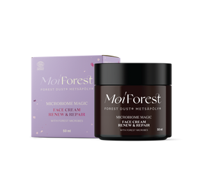Moi Forest -tuotteet on kehitetty vahvistamaan ihoasi arvokkailla luomuraaka-aineilla sekä suomalaisten yliopistojen kehittämällä mikrobiuutteella. Re-Connecting Nature™ -mikrobiuute tukee tutkitusti elimistön mikrobiomia ihon kautta käytettynä. Tunne metsä ihollasi, ja tuo sen hyvää tekevät vaikutukset omaan kylpyhuoneeseesi ♡